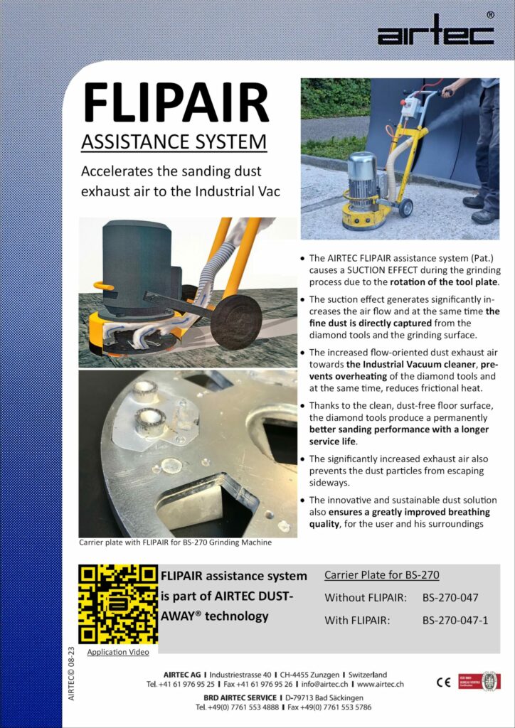 Accélère l’évacuation de la poussière de ponçage vers l‘Aspirateur. L’évacuation d’air nettement plus élevée empêche également les particules de poussière de s’échapper latéralement.