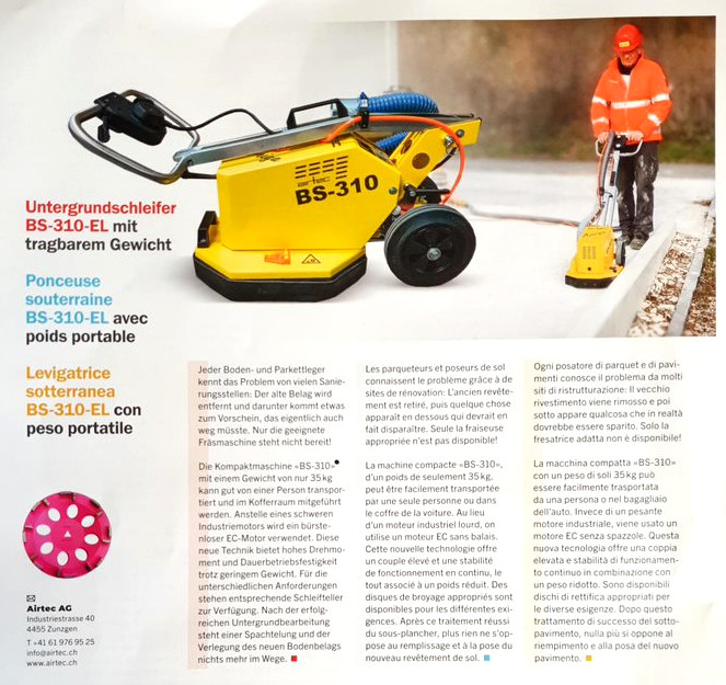 Thank to the magazine for Surface Preparation Professionals „Boden Schweiz / Swiss Floors“ for mentioning our BS-310 Floor Grinder. For more Information click here!